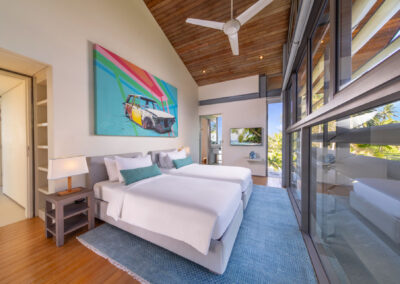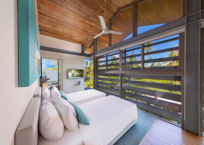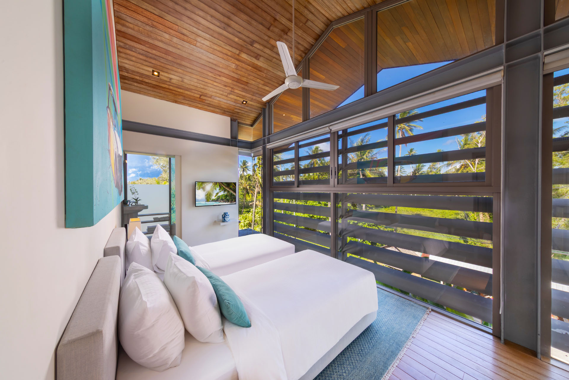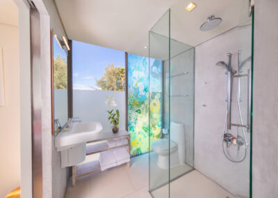 Guest Bedroom 4 King sized bed or 2 single beds Single-seater chair Smart TV Closet Shared bathroom with Vanity, Rain shower & Shower, Toilet (with Guest Bedroom 3) Toiletries Ceiling Fan Air conditioning GALLERY